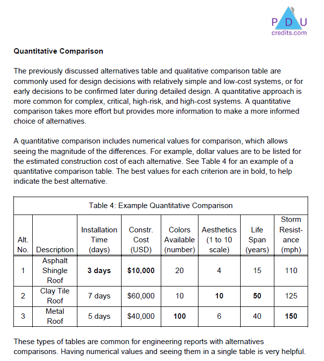 This course reviews approaches to comparing alternatives for projects. Topics include: