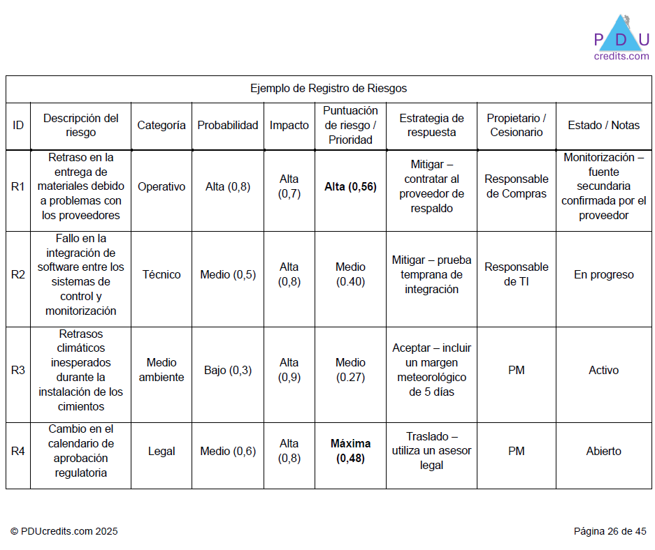 • Registro de riesgos