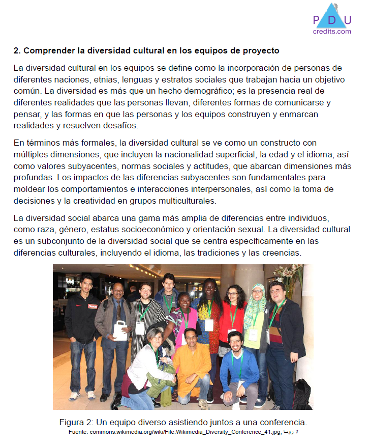 Este curso trata sobre la diversidad cultural en entornos de equipos de proyecto. Se revisan los beneficios y los desafíos. Se ofrecen consejos prácticos para gestionar equipos diversos con el fin de superar las barreras en la comunicación, la falta de confianza, los conflictos y la desigualdad.